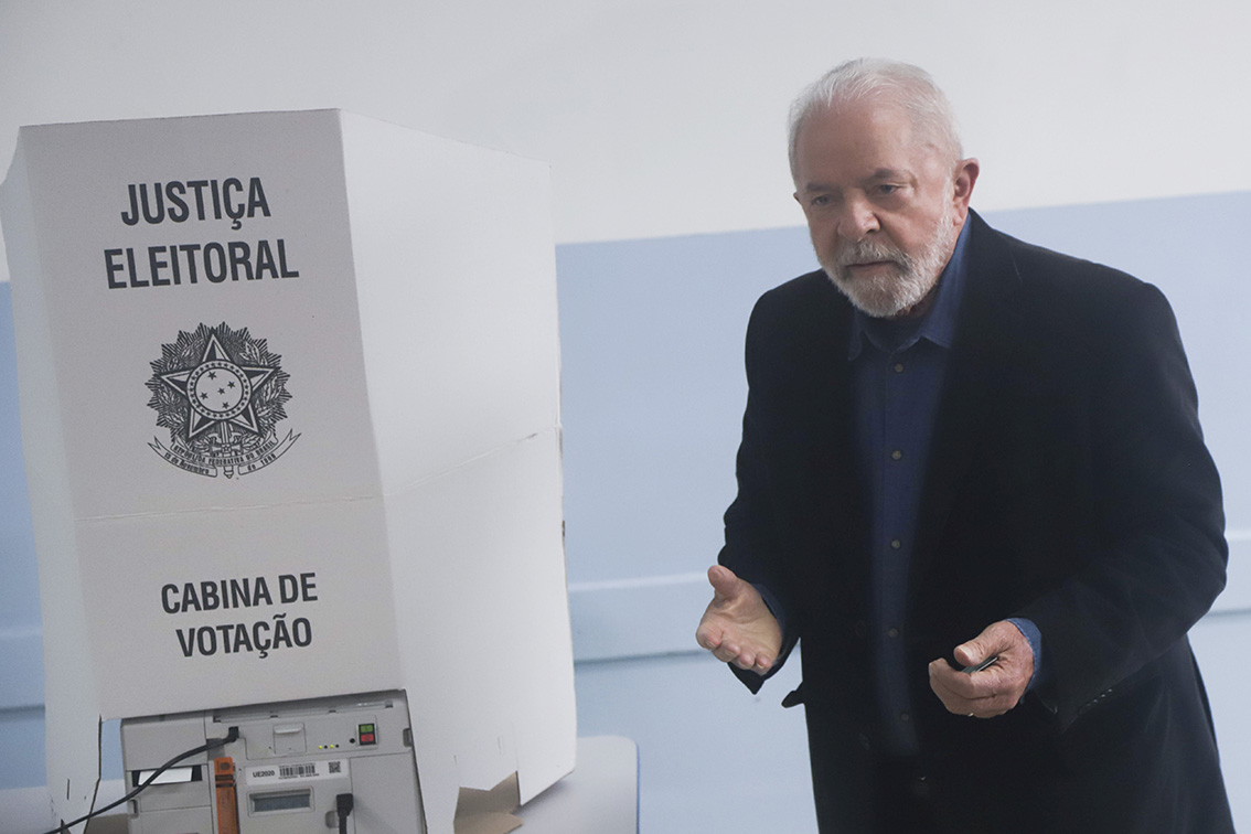 10月2日,巴西左翼阵营劳工党候选人、前总统卢拉在圣保罗一处投票站参加投票。