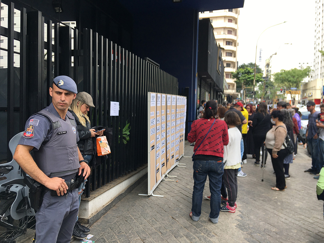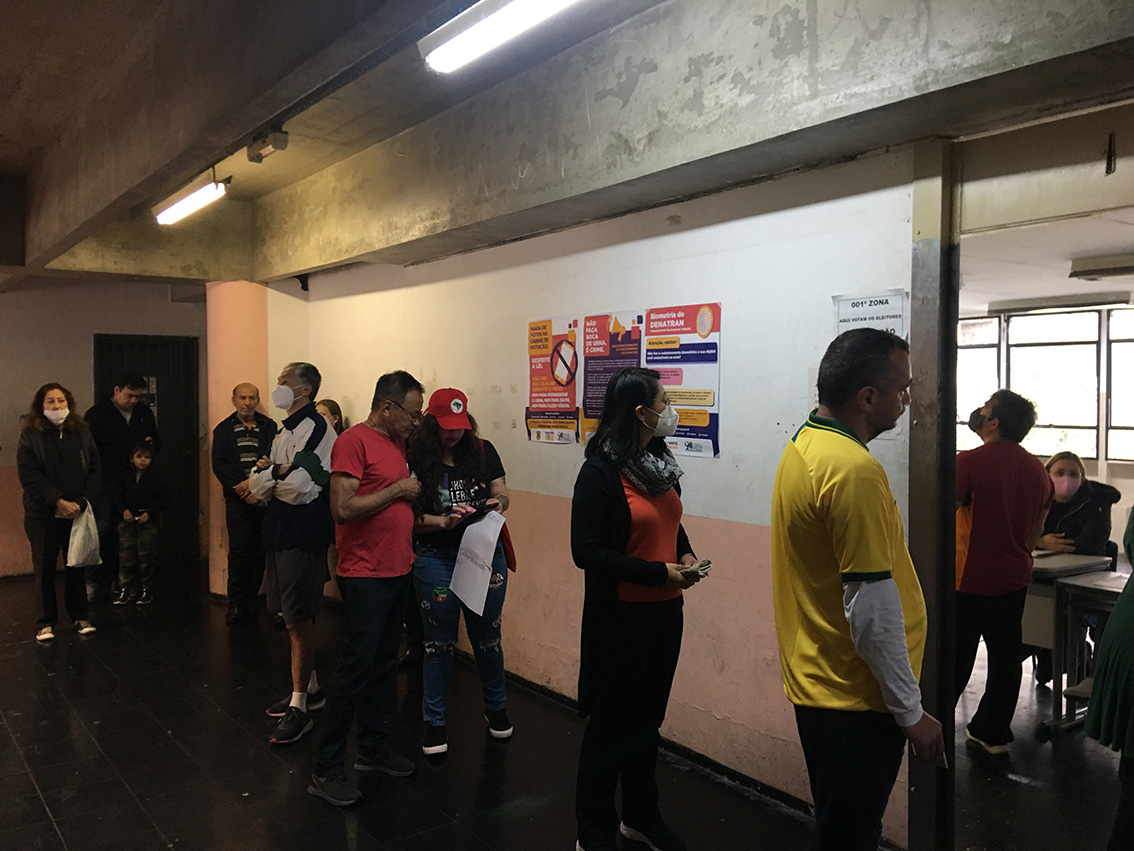 当地时间10月2日,巴西圣保罗,选民在巴西圣保罗一个投票站排队参加投票。(图片来源:中新社)