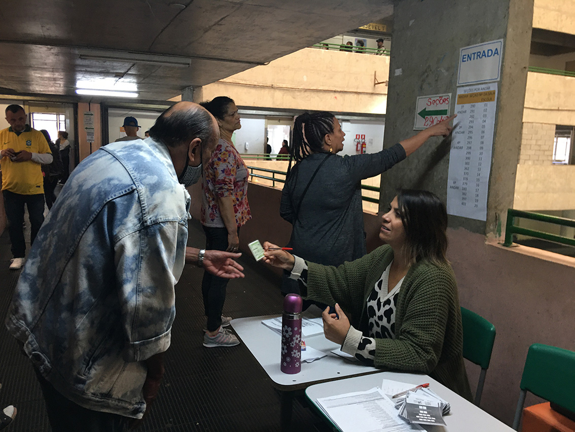 10月2日,在巴西里约热内卢一处投票站,工作人员(右)为选民进行登记。(图片来源:本文图片除标注外均自新华社)