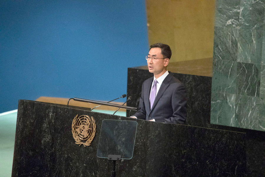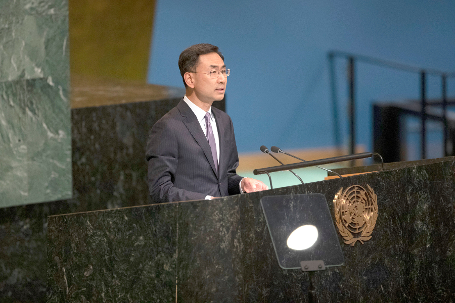 中国常驻联合国副代表耿爽大会发言。(图片来源:中新社)