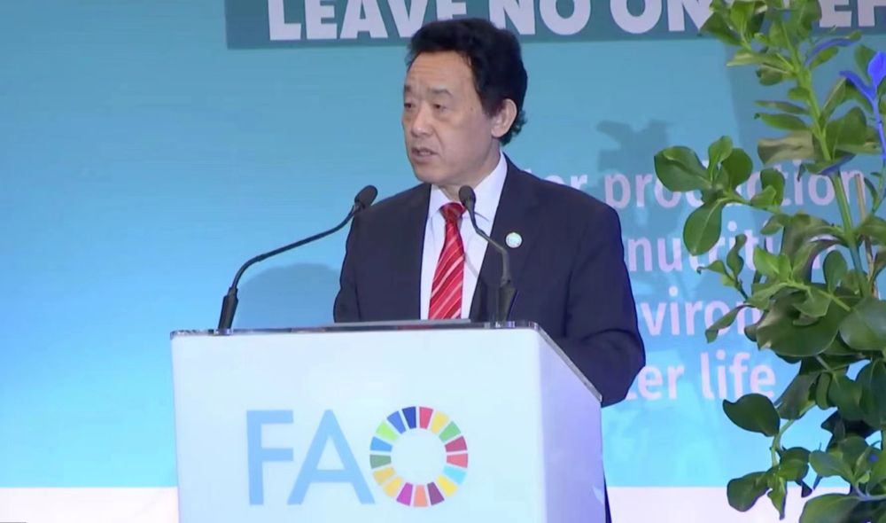 联合国粮农组织总干事屈冬玉在活动开幕式发言。(图片来源:主办方活动视频截图)
