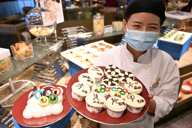 随着东京奥运会的召开,中国内蒙古呼和浩特市一酒店推出奥运主题菜品。(图片来源:中新社)