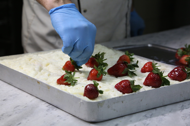在土耳其安卡拉,一名厨师制作斋月甜点玫瑰牛奶皮。