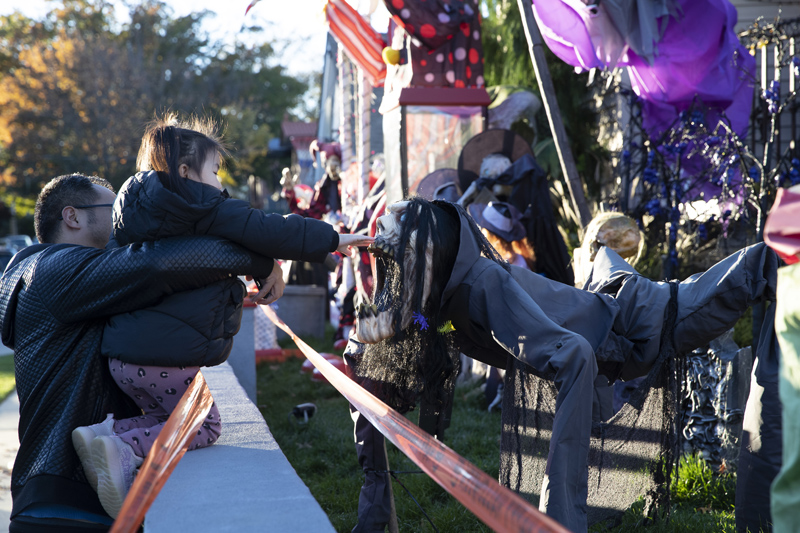 10月27日,美国纽约市皇后区一处居民住宅布置繁复的万圣节装饰,吸引许多路人驻足观赏。(图片来源:本文图片除标注外均综编自中新社)
