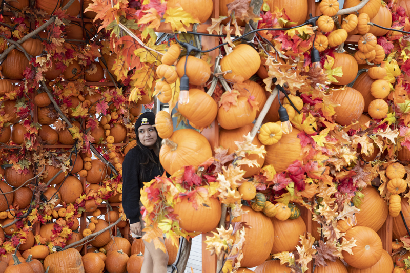 10月19日,美国纽约曼哈顿17号码头,一名青年在万圣节南瓜桥装饰旁。