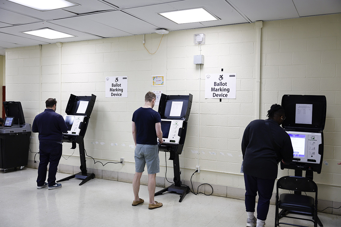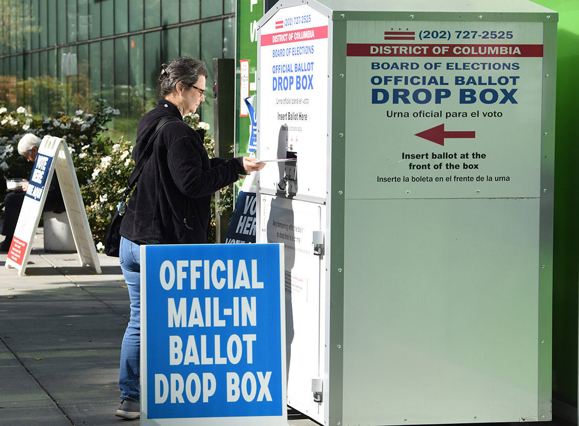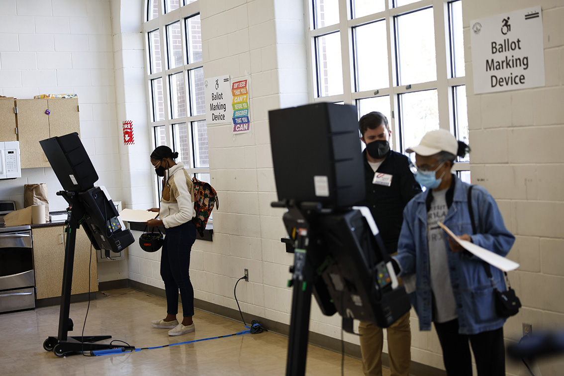 11月8日,选民在美国华盛顿的一处投票站参加中期选举投票。