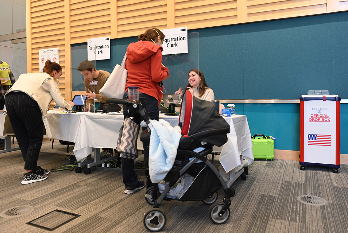 图为位于美国首都华盛顿的一处投票站。(图片来源:中新社)