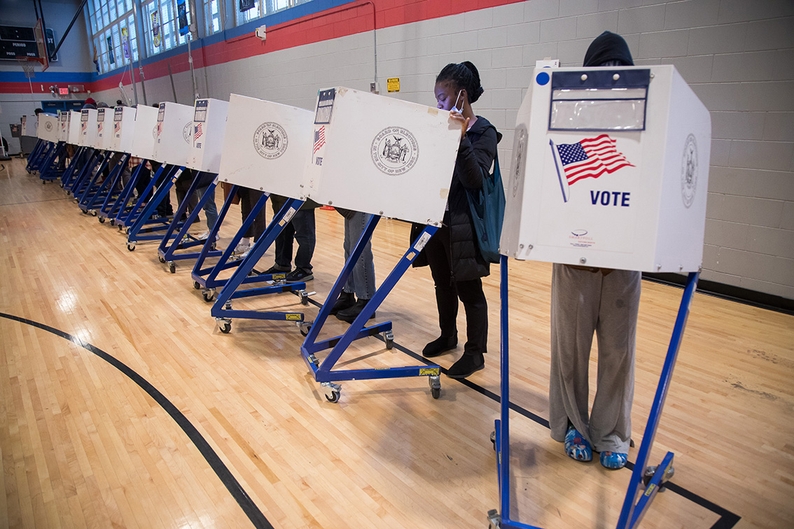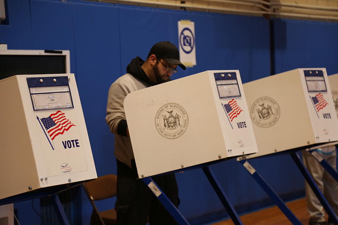 11月8日,选民在美国纽约的一处投票站参加中期选举投票。