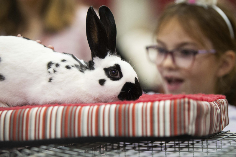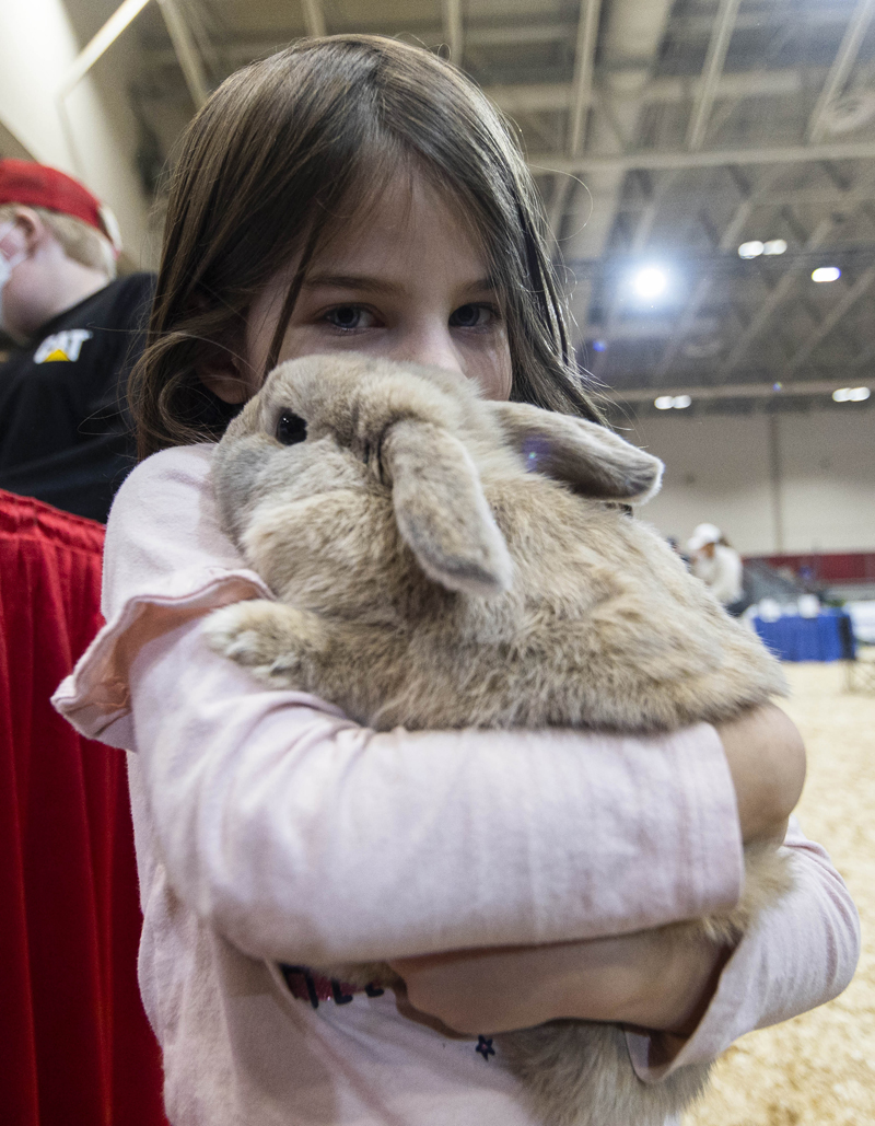 11月13日,在多伦多举行的加拿大皇家冬季农业博览会上,一名女孩抱着一只兔子拍照。