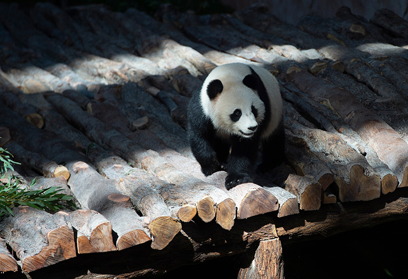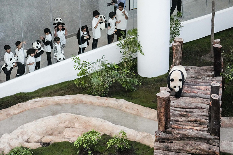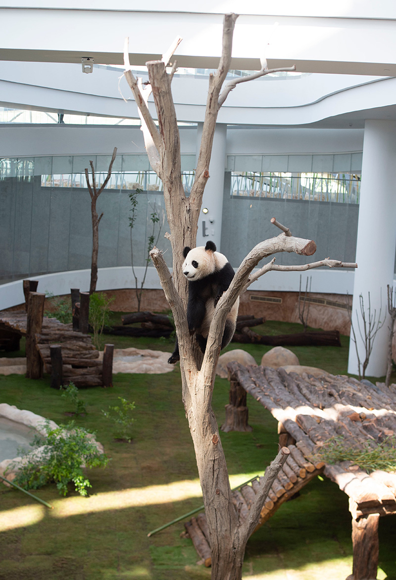 11月17日,大熊猫“四海”在卡塔尔首都多哈的豪尔熊猫馆内。(图片来源:本文图片除标注外均自新华社)