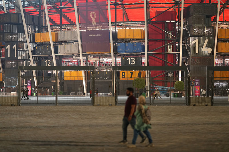 11月17日,卡塔尔多哈,974体育场夜景。作为世界杯历史上第一座可以完全拆解的体育场,由974个集装箱拼装而成,而974正是卡塔尔的国际拨号代码。(图片来源:本文图片除标注外均综编自中新社)