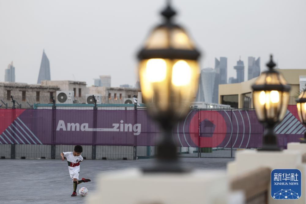 11月8日,一名男孩在多哈瓦基夫市场的空地上踢球。(图片来源:新华社)