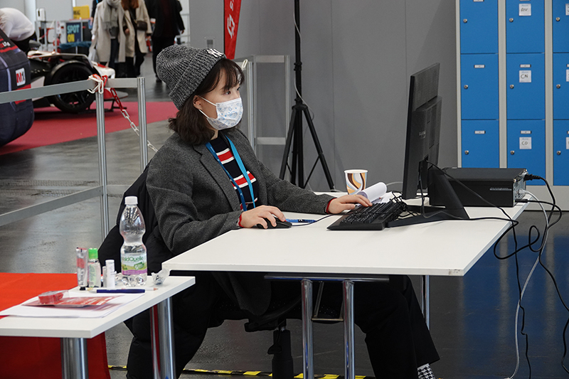 11月26日,来自上海第二工业大学的朱珂在奥地利萨尔茨堡参加2022年世界技能大赛特别赛奥地利赛区货运代理项目比赛。