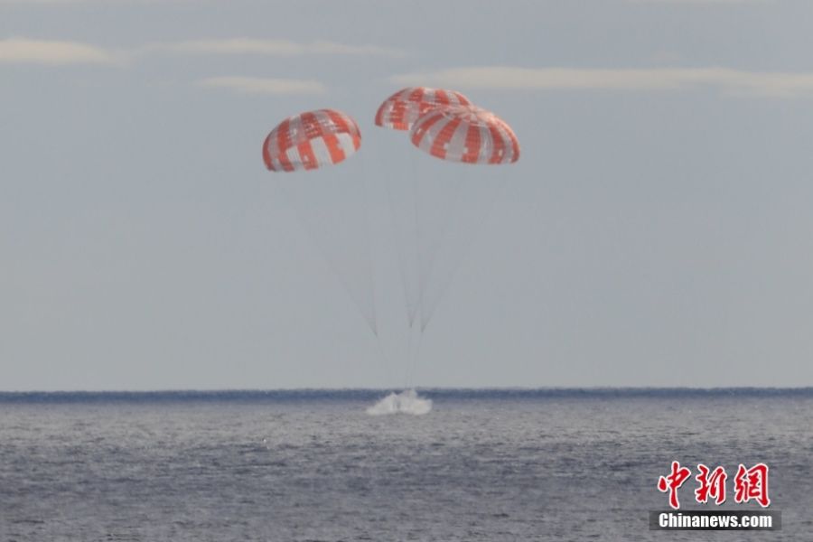 “猎户座”飞船在墨西哥下加利福尼亚州附近的太平洋上溅落。(图片来源:中新网)