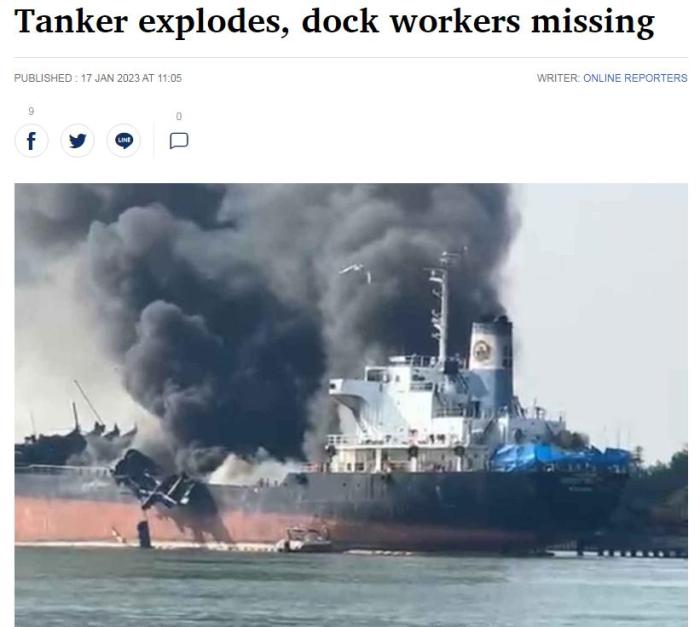 新华社报道,泰国港口局副局长普里帕当天在新闻发布会上证实,一艘停在干船坞内、正准备检修的油船当天上午发生爆炸。初步怀疑油船在准备检修时没有彻底清洗并排空燃油。泰国交通部副次长索拉蓬在发布会上说,3名遇难者尚无法确认身份。目前火势已经被控制。