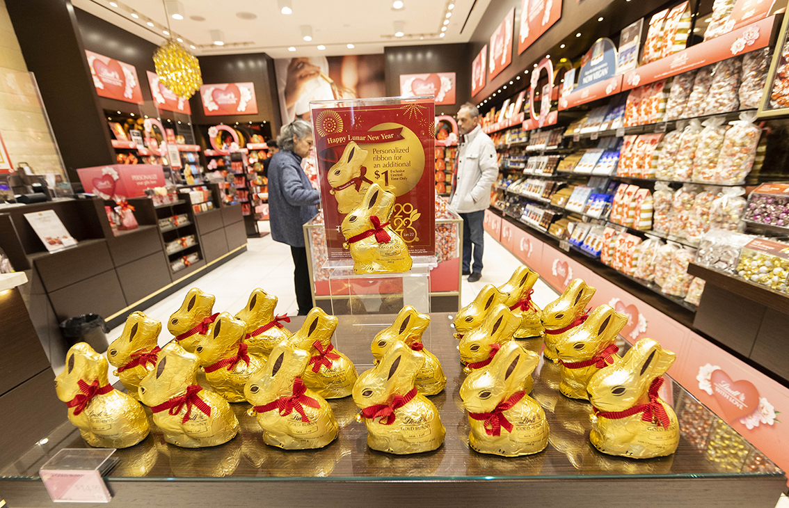 这是1月18日在加拿大多伦多一处巧克力店拍摄的为迎接兔年春节推出的兔子巧克力。(图片来源:本文图片均自新华社)