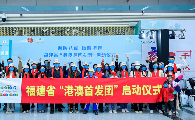 2月10日,福建省恢复港澳入出境游首发团在福州启程。(图片来源:央广网)