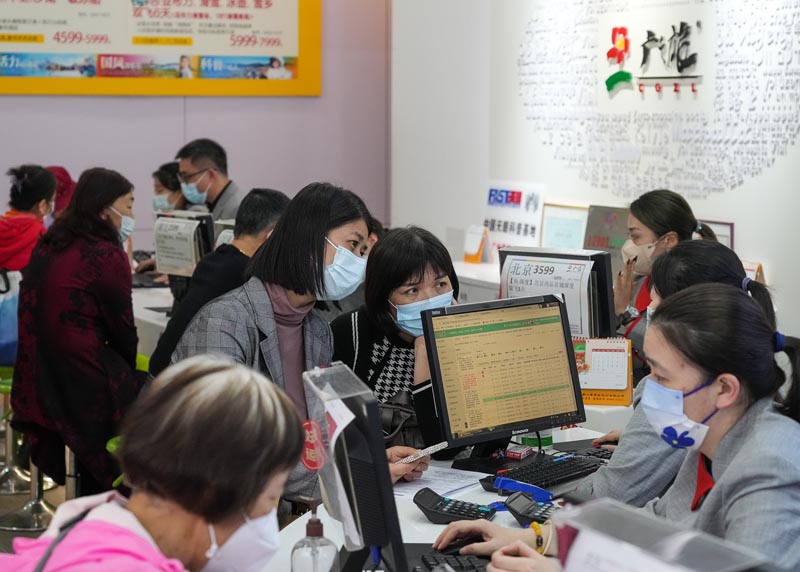 2月8日,消费者在广州广之旅国际旅行社销售网点咨询。
