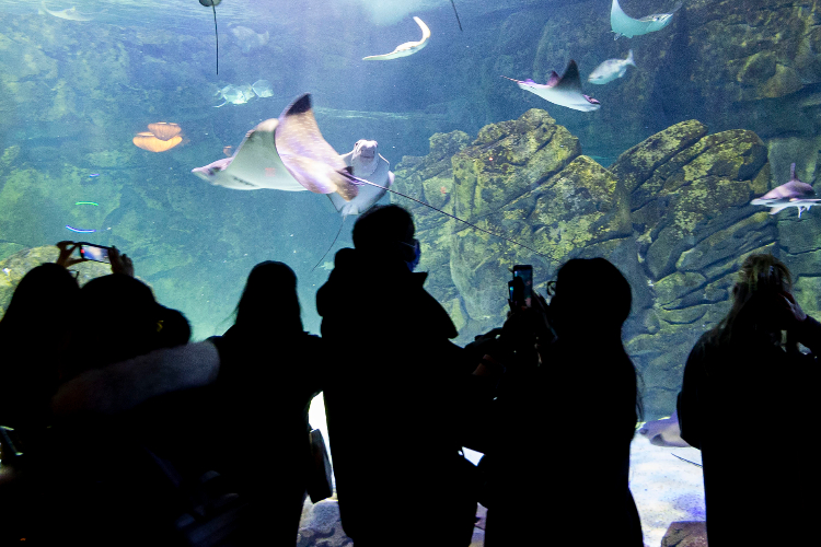 游客在加拿大多伦多的里普利水族馆内参观。(图片来源:中新社)