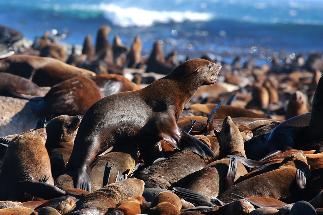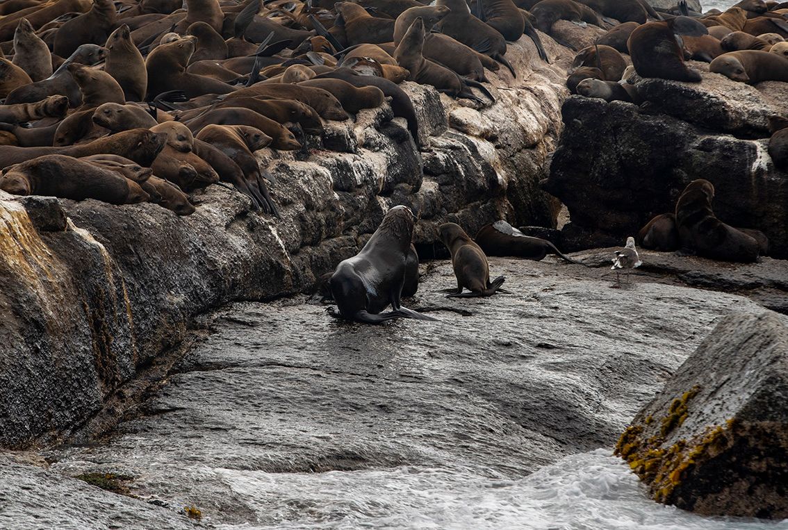 在南非西蒙镇,这里的海豹岛因成群的海豹而闻名。由于当地注重动物保护,这里的海豹并不怕人,也习惯上岸向人类索要食物。图为海豹岛上的海豹群。(图片来源:中新社)