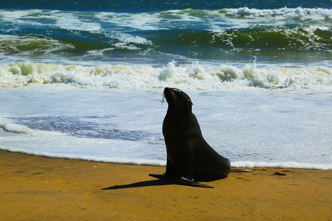 在南部非洲国家纳米比亚知名的“三明治湾”,大西洋海滩上休憩的海豹。(图片来源:中新社)