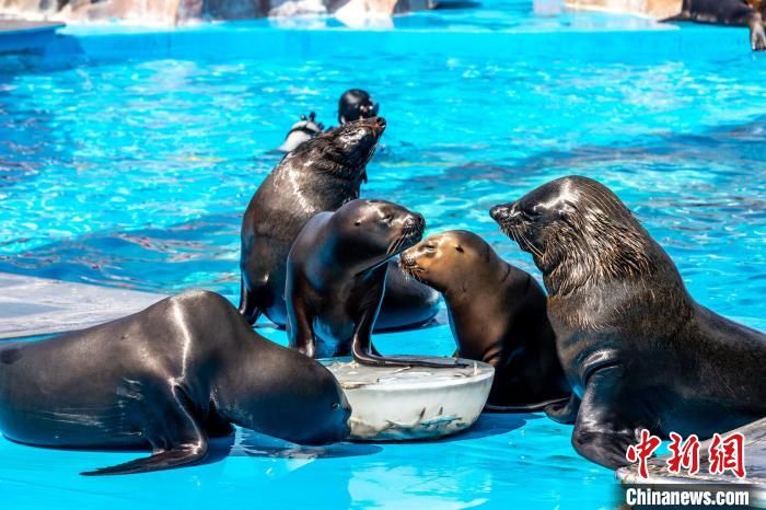 2022年9月10日,上海海昌海洋公园内,海豹吃上了定制月饼。(图片来源:中新网)