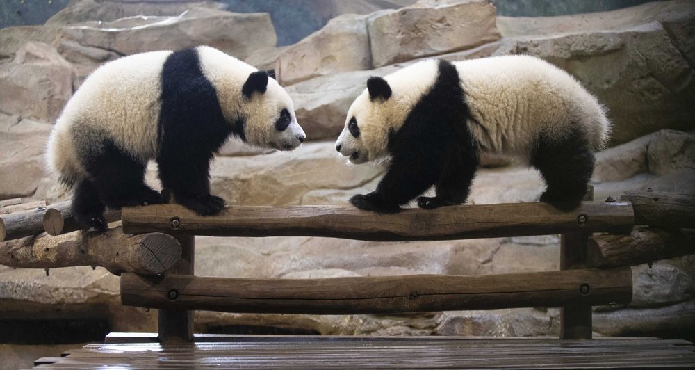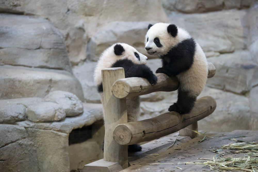旅法中国大熊猫“欢欢”和“圆仔”。(图片来源:中新社)