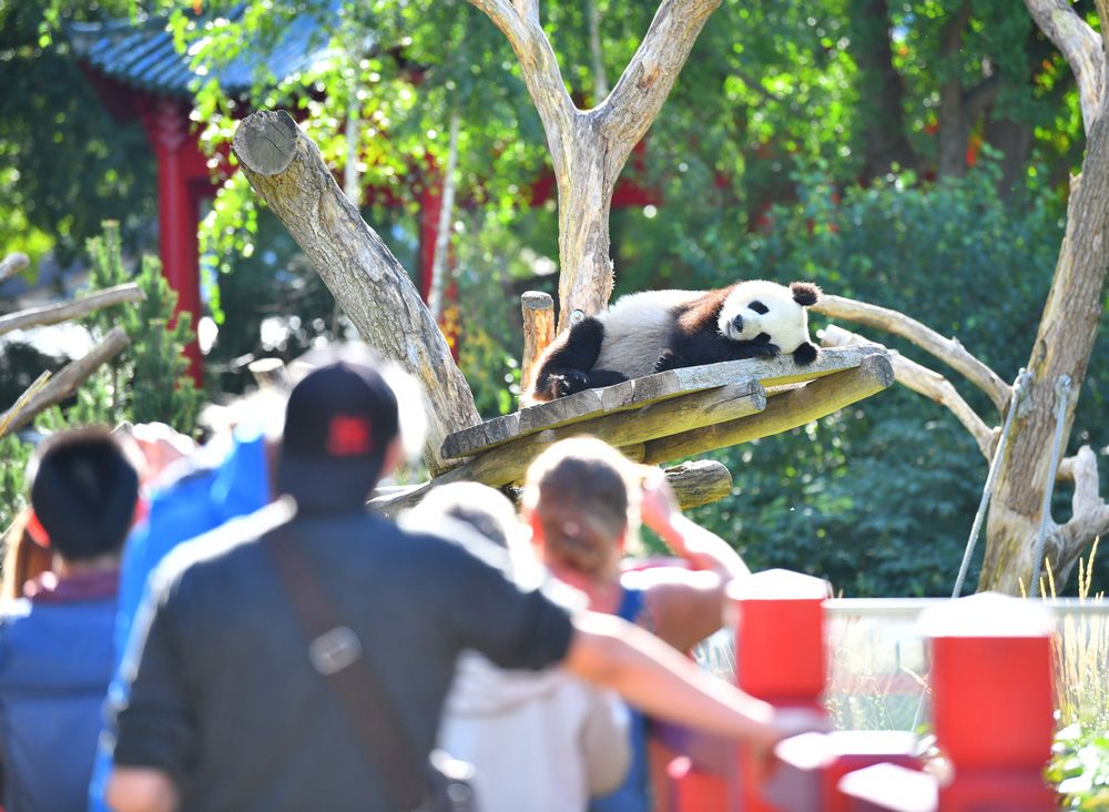 在德国出生的大熊猫双胞胎兄弟“梦想”和“梦圆”8月31日在柏林动物园迎来3岁生日。(图片来源:新华社)