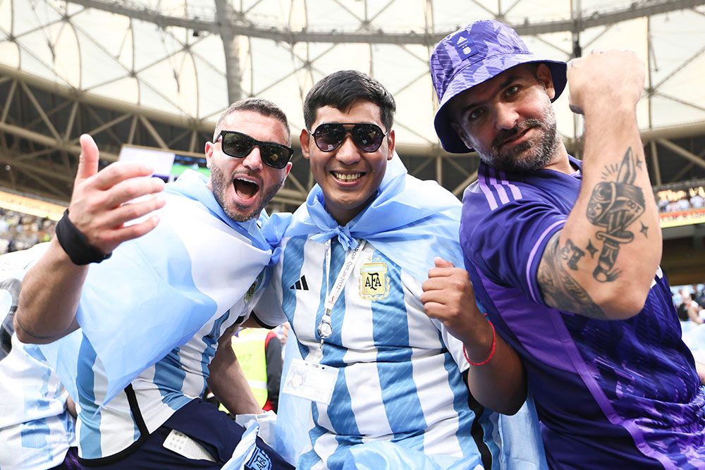 卡塔尔世界杯足球赛决赛中的球迷。(图片来源:新华社)