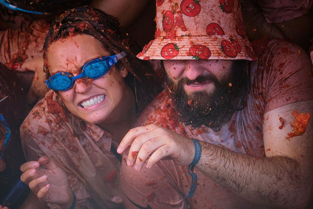 西班牙小镇上演“西红柿大战”。(图片来源:新华社)