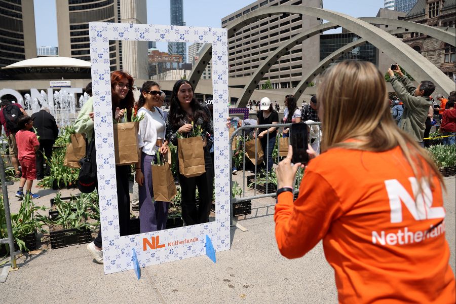 【欧洲时报网】当地时间5月21日,荷兰驻多伦多总领馆向多伦多民众赠送1.2万株不同品种的郁金香,以纪念并感谢加拿大在二战期间对荷兰的援助。