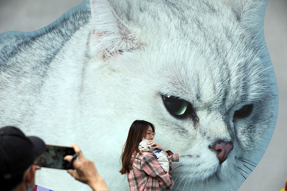 上海老街“变身”创意“猫街”,吸引民众前来“打卡”。(图片来源:中新社)