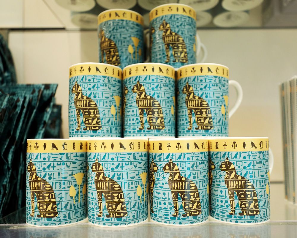在英国伦敦大英博物馆拍摄的以藏品“盖尔-安德森猫”为灵感的文创产品。(图片来源:新华社)