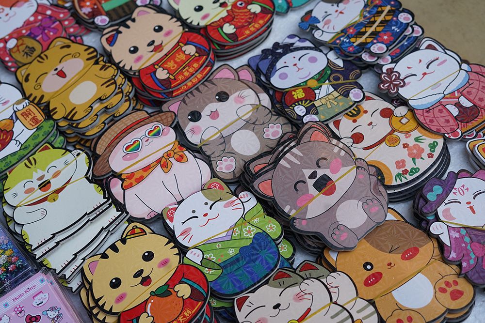 在越南首都河内马市街拍摄的带有“猫元素”的年货。(图片来源:新华社)