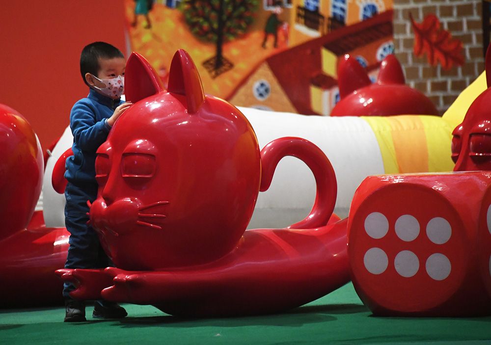 “喵趣奇境”亮相上海世博会博物馆。(图片来源:中新社)
