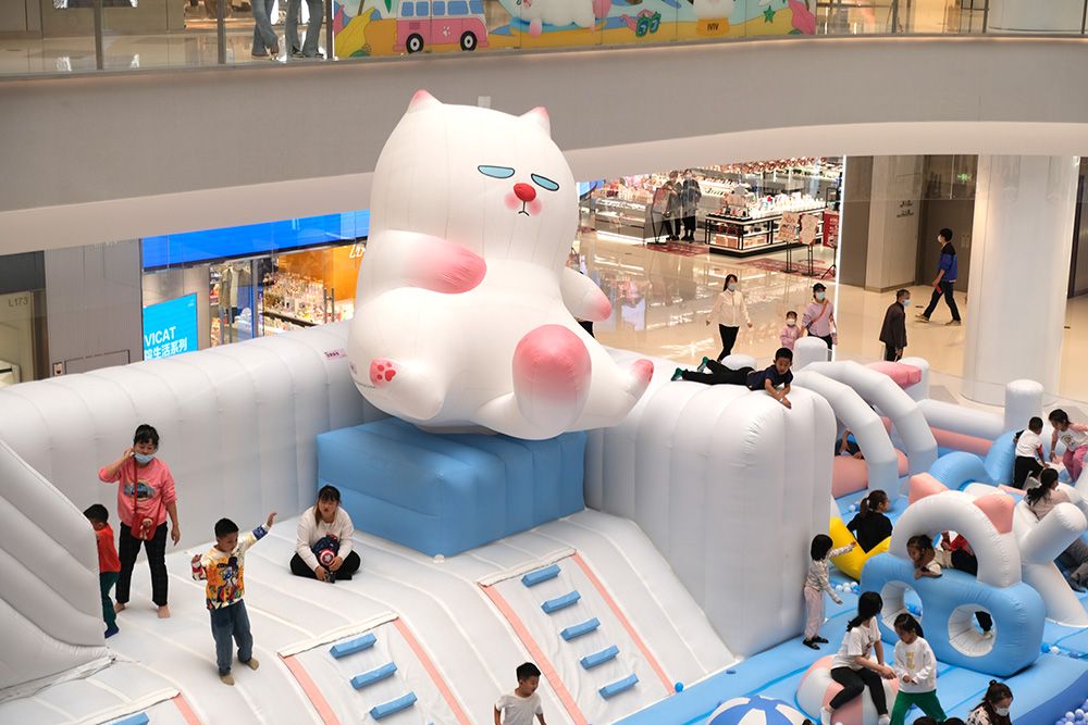 中国辽宁沈阳,ViViCat懒萌猫IP主题展正在一大型商场共享大厅展出,吸引市民参观游玩。(图片来源:中新社)