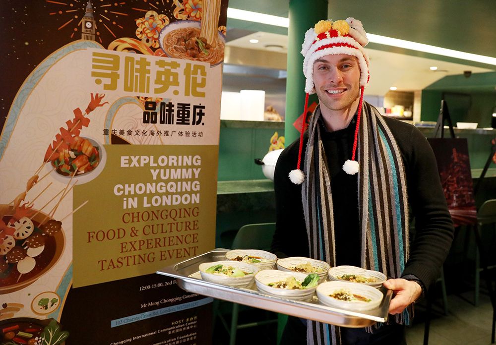 “寻味英伦品味重庆”活动在伦敦举行,图为活动现场展示重庆小面。(图片来源:新华社)