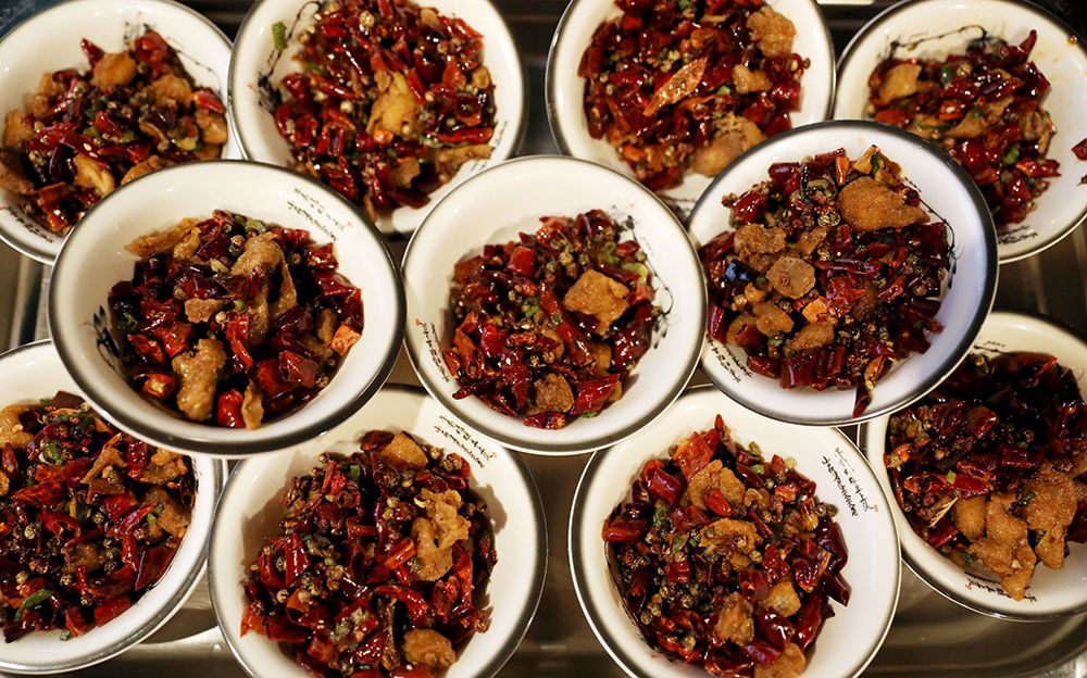 在英国伦敦“寻味英伦品味重庆”活动现场拍摄的重庆辣子鸡。(图片来源:新华社)