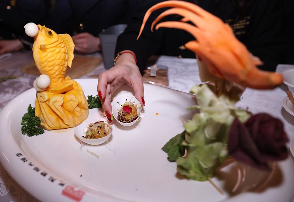 在位于巴黎的法国外交部举行的榜单揭晓活动现场拍摄的中国美食。(图片来源:新华社)