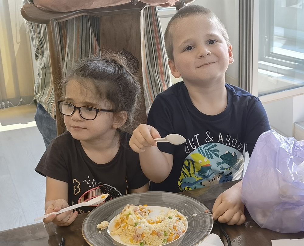 儿童在保加利亚索非亚举办的中国美食培训课程上品尝炒饭。(图片来源:新华社)