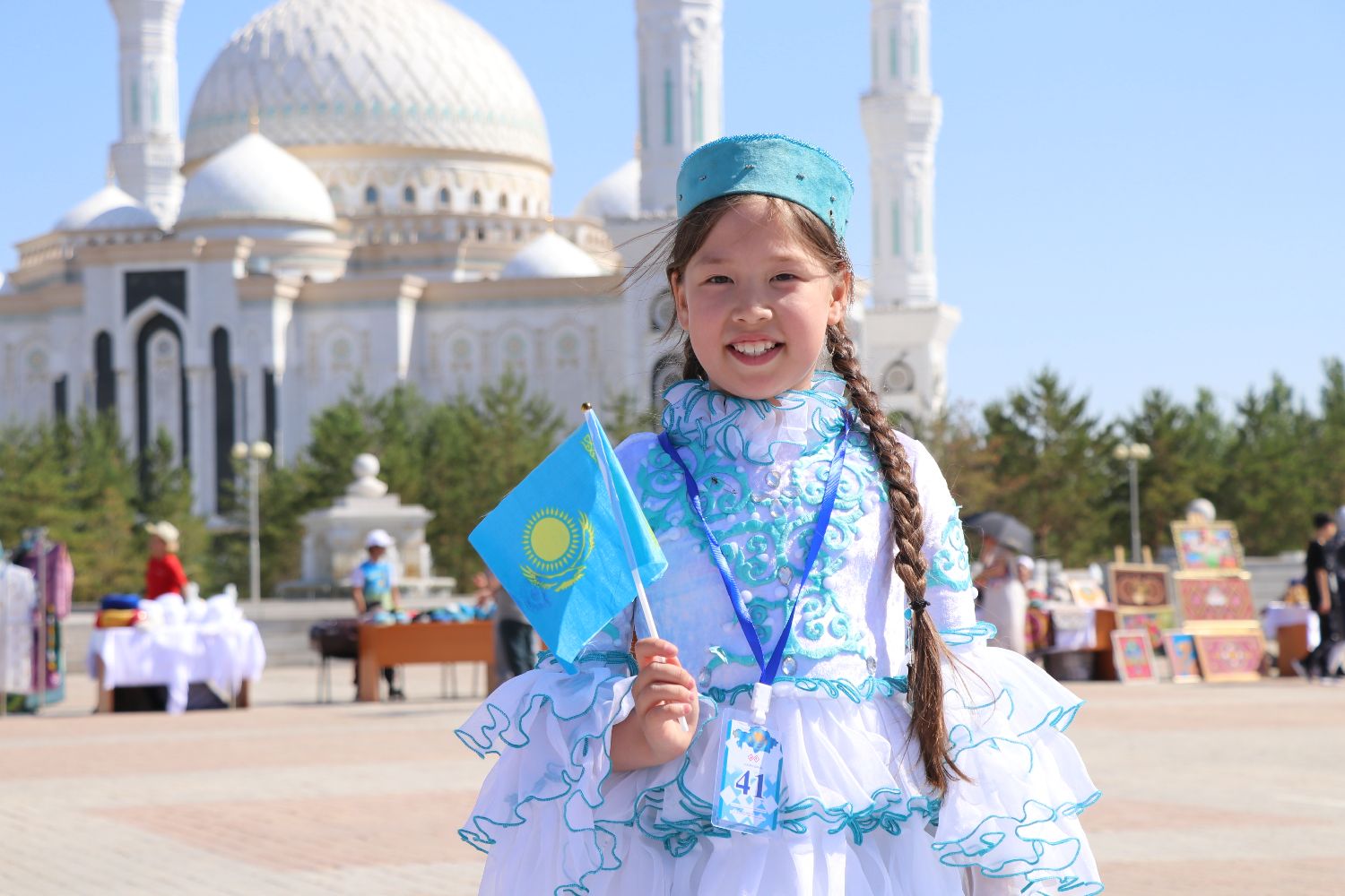 6月4日,哈萨克斯坦阿斯塔纳,一名哈萨克斯坦小姑娘在节日庆祝活动现场。(图片来源:中新网)
