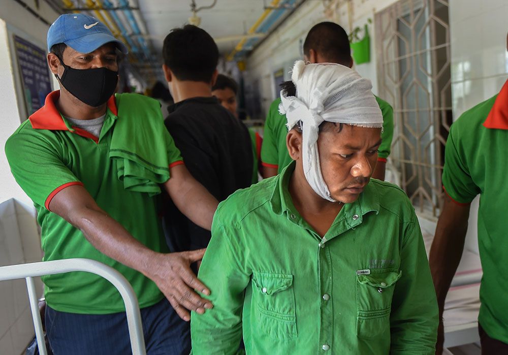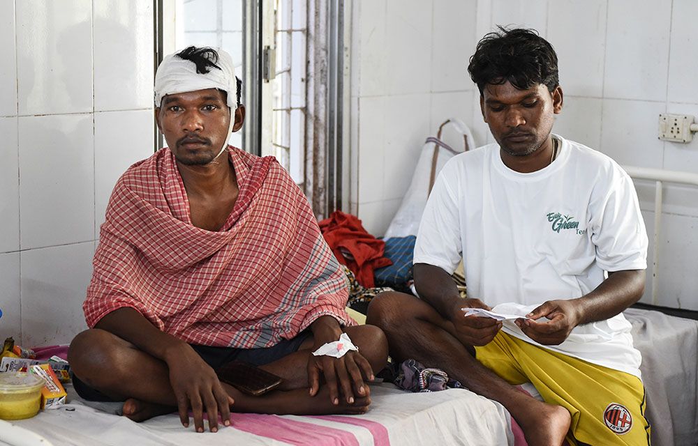 在印度奥迪沙邦巴拉索尔的一家医院内拍摄的列车脱轨相撞事故伤者。