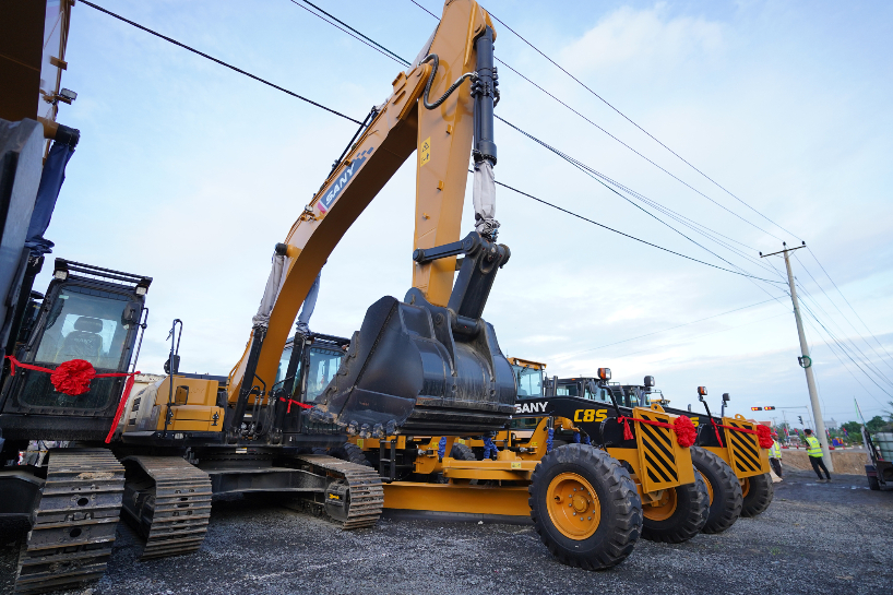 在柬埔寨干丹省拍摄的高速公路施工设备。(图片来源:新华社)