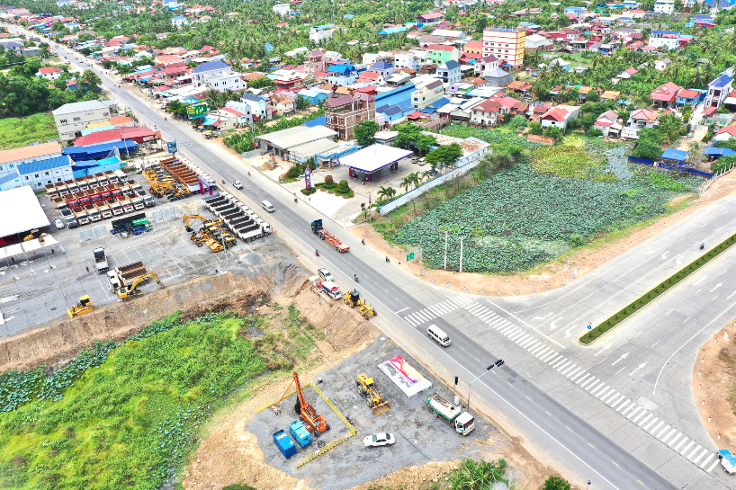 在柬埔寨干丹省拍摄的高速公路施工起点(图片来源:新华社)