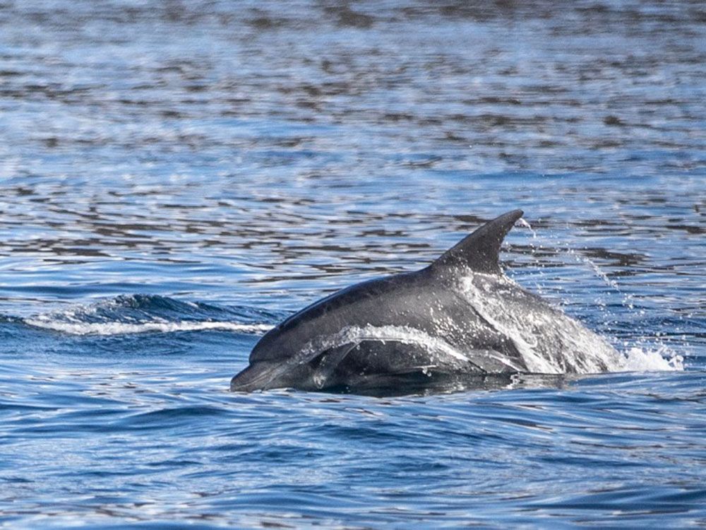 海豚在南非开普敦福尔斯湾游弋。本格拉寒流和厄加勒斯暖流在这里交汇,为海洋生物生长创造了良好条件,多种海洋生物在此生活。(图片来源:新华社)