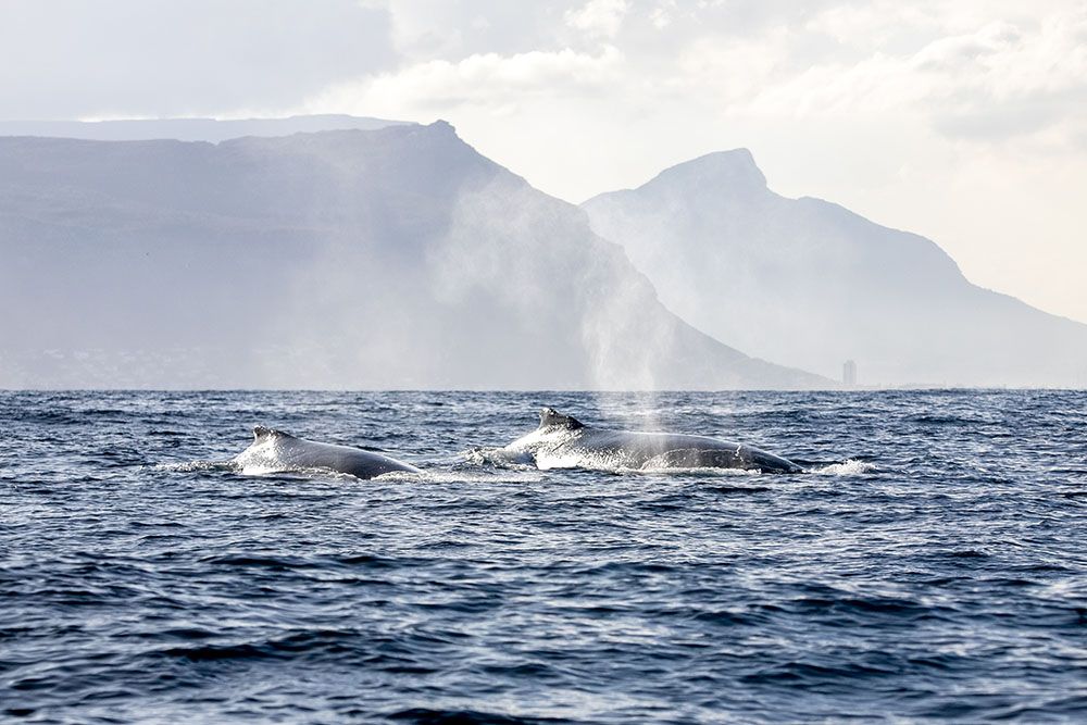 座头鲸在南非开普敦福尔斯湾游弋。(图片来源:新华社)