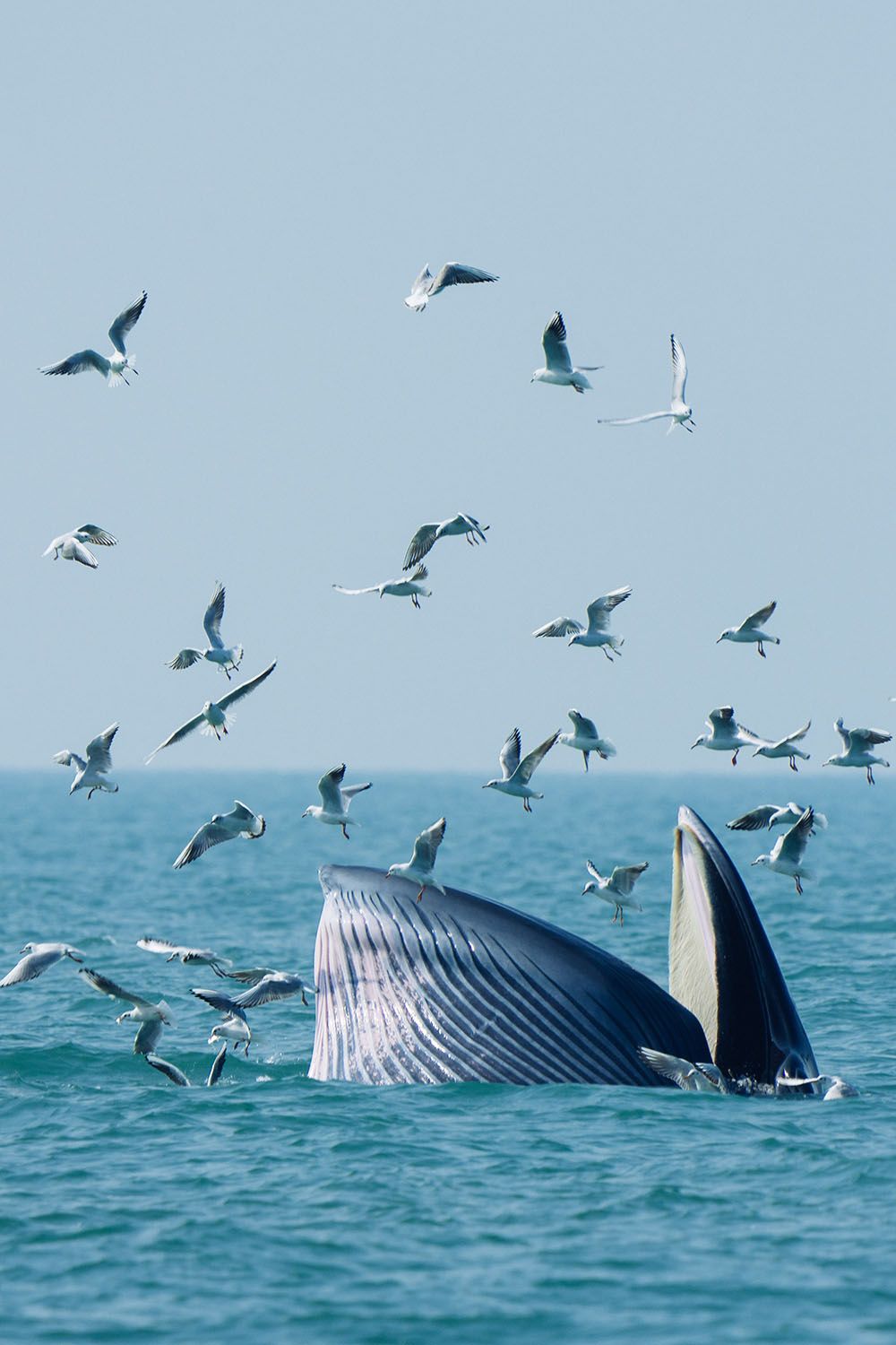 一头布氏鲸在涠洲岛海域捕食。(图片来源:新华社)