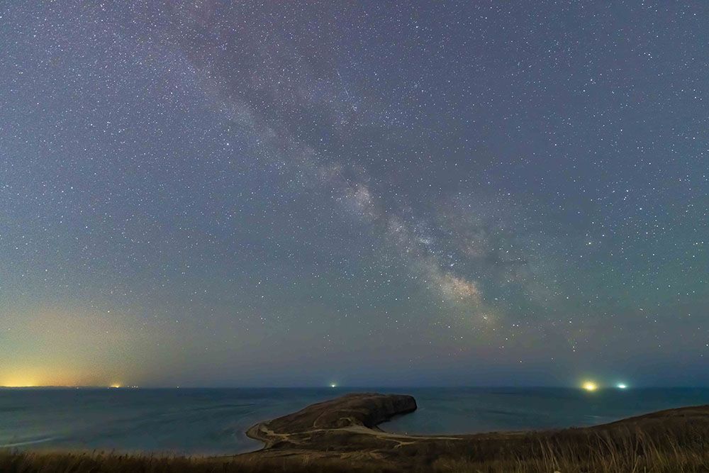 俄罗斯符拉迪沃斯托克市切尔尼绍夫湾上空的银河。(图片来源:新华社)