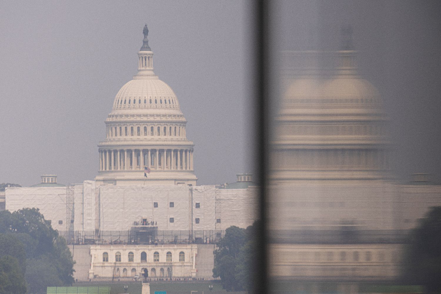 拜登指出,加拿大魁北克的野火火情对美国产生了最直接的影响。自5月以来,美方已部署超600名消防员协助加方应对“可能是加拿大历史上最严重的野火灾情”。图为6月7日在美国首都华盛顿拍摄的烟尘笼罩的国会大厦。(图片来源:新华社)