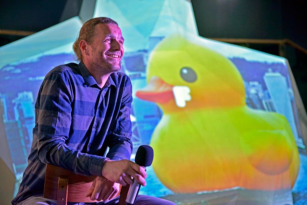 “大黄鸭之父”霍夫曼。(图片来源:中新社)